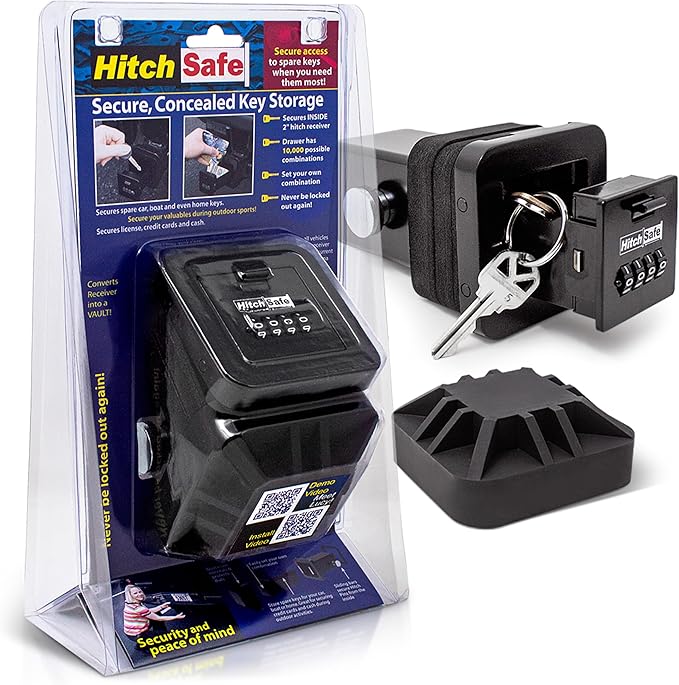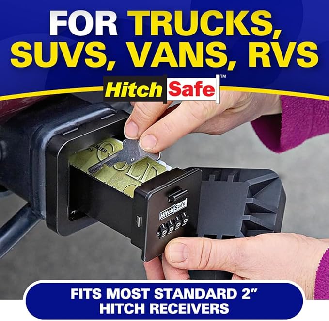 - FITS MOST STANDARD 2” TRUCKS - The HitchSafe secure key vault fits in most standard 2” trailer hitch to hide cards, cash, keys, and more! *All Toyota pickup trucks (2002-2021) require the HitchSafe HS7021T Hitch Bolt Set - sold separately.