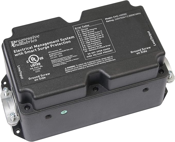 - HEAVY DUTY PROTECTION: Rated for 50 Amp and 120-240 V with 12,000 W capacity; absorbs surges up to 3,580 joules; helps safeguard RV electronics from severe damage