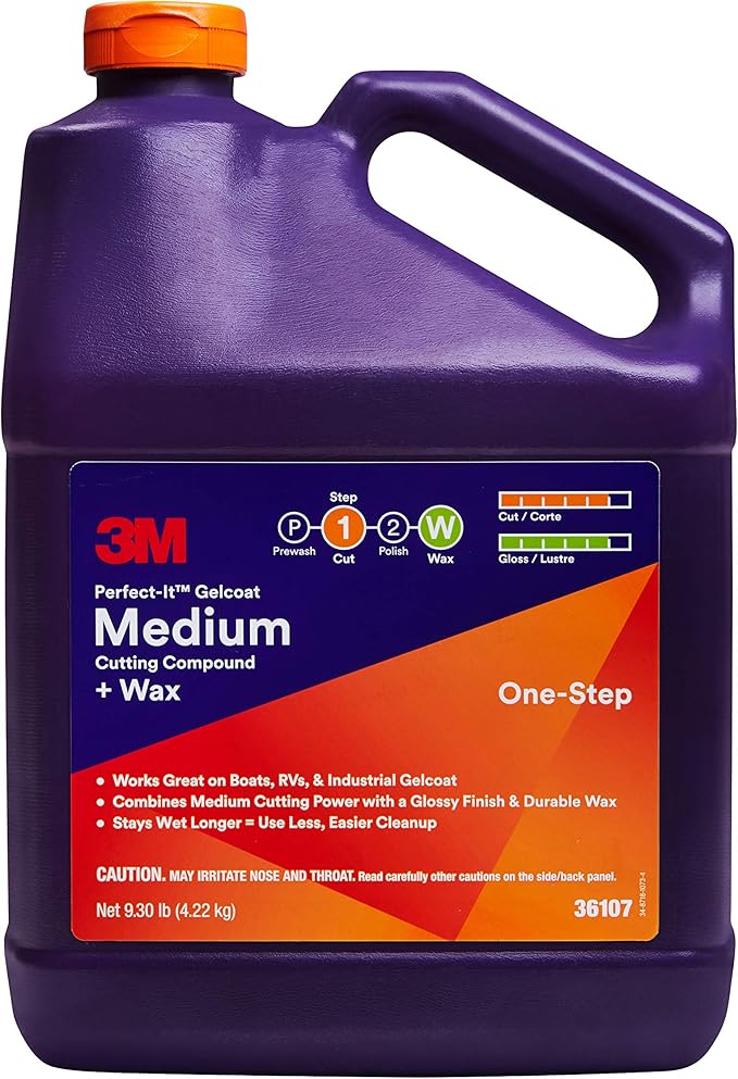 3M Perfect-It Gelcoat Medium Cutting Compound + Wax, 36107, 1 Gallon, One-Step Process, P1500 and Finer Scratches, Fiberglass Oxidation Remover for Boats and RVs