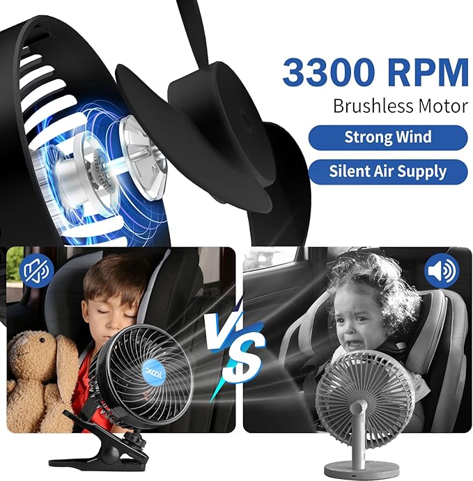 - 【Strong Wind】Car vehicle cooling fan with high efficient fan rotating, bring coolness to the passengers and baby or pets in every corner in the backseat of car.