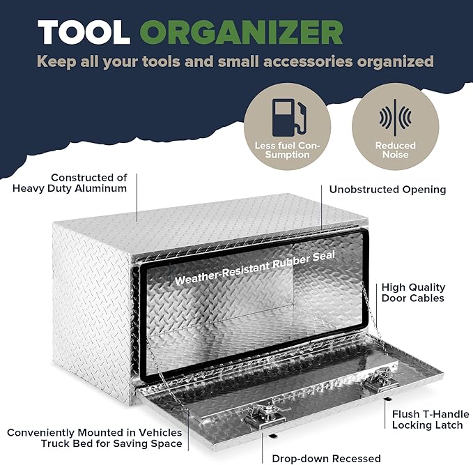 - Super Durable:Our tool boxes are made of aluminum with a diamond pattern to enhance the aluminum for maximum strength and longevity