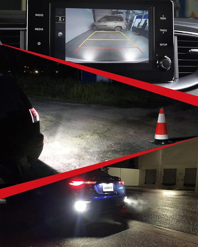 LASFIT 7443 7440 LED Bulbs Reverse Backup Light, 7444 7444na White T20 Daytime Running DRL Parking Lamp L-7440 W21W WY21W 6000K for Automotive Replacement, Plug and Play, Pack of 2