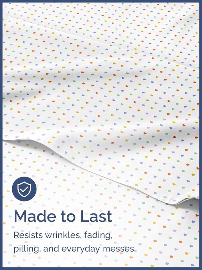 Kids Full Size Hearts Bed Sheets - 4 Piece Colorful Heart Sheet Set - Soft, Cute & Cozy - Comfy, Breathable & Machine Washable - Easy-Care & Wrinkle Free Bed Set for Boys, Girls, Teens and Toddlers