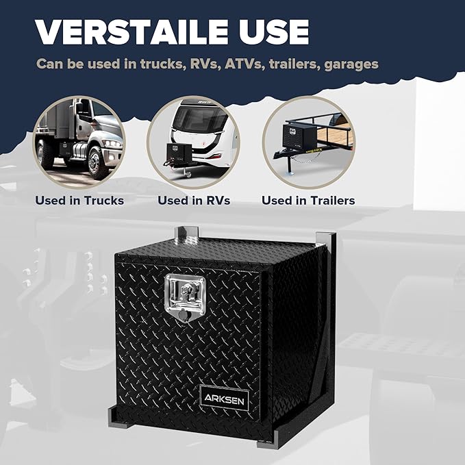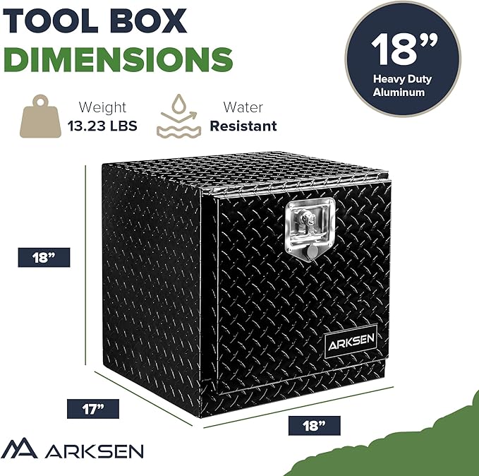 ARKSEN 18 Inch Heavy Duty Aluminum Diamond Plate Tool Underbody Box, Waterproof Square Truck Storage Organizer Chest for Pick Up Truck Bed, RV Trailer with T-Handle Lock and Keys - Black
