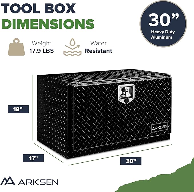 ARKSEN 30 Inch Heavy Duty Aluminum Diamond Plate Tool Underbody Box, Waterproof Square Truck Storage Organizer Chest for Pick Up Truck Bed, RV Trailer with T-Handle Lock and Keys - Black