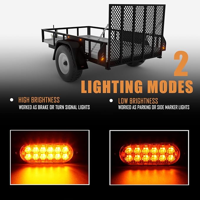 - DOT compliant safety light; built-in 12 PCS SMD LEDs, features premium optics to output super bright amber light, high brightness for turn or brake light, low brightness for side marker or parking light, making them ideal for front or rear vehicle applications, improve visibility at night, in fog or raining day