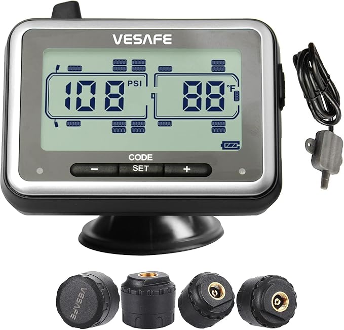 Vesafe TPMS, Wireless Tire Pressure Monitoring System for RV, Trailer, Coach, Motor Home, Fifth Wheel, Including a Signal Booster and 4 Anti-Theft sensors.