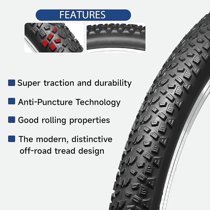 - Size: 27.5"x2.125";Fits tire widths: x 1.95”-2.125”