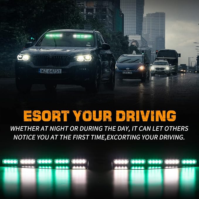 XRIDONSEN Green White Emergency Visor Lights Interior Windshield Strobe Lights Bar Warning Flashing Safety for Firefighter Vehicles Trucks w/Take Down, Deck Split Mount (34 inch, 40 LED)