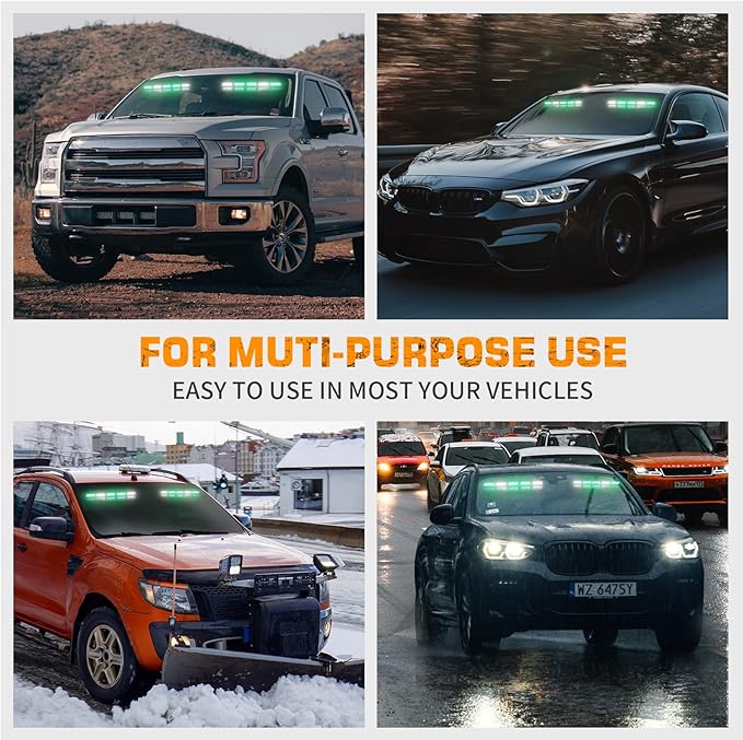- 【MULTI-PURPOSE USE】: This sun visor light bar is ideal for emergency vehicles, law enforcement cars, fire dept POV, EMT first responder, volunteer services, EMS, plow trucks, construction vehicles, safety caution, etc, to warn of potential hazards.