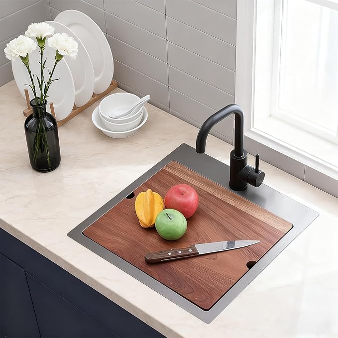 Gunmetal Black 18x18 Drop In Bar Sink, Stainless Steel Workstation Topmount Kitchen Prep RV Sink with Cutting Board, 9 Inch Deep Single Bowl