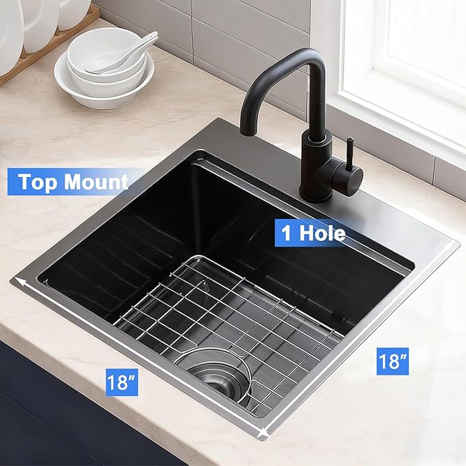 - [High Quality Material] - The black drop in bar sink is constructed with T304 stainless steel TRU16 real 16 Gauge for highly Corrosion and dent resistance, Black Nano finished for durable, anti-rust, anti-scratch and anti-collision.