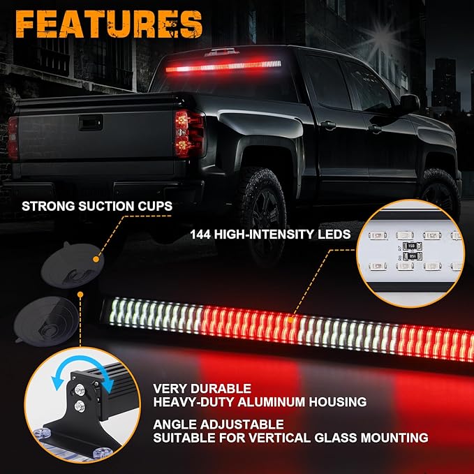 - 【HIGH QUALITY】This emergency vehicle lights is well-made and made of high-quality aluminum, with a beautiful and sturdy housing and anti-scratch PC lens. Comes with 144 high brightness LEDs, up to 50,000 hours of service life.