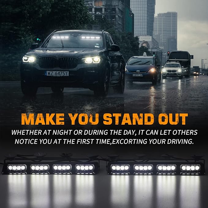 - 【MAKE YOU STAND OUT】This 2 in 1 windshield strobe lights bar coms with 32 high brightness LEDs. Even during the day, the lights are bright and noticeable to the driver.These are very bright and effective for any warnings and emergencies.