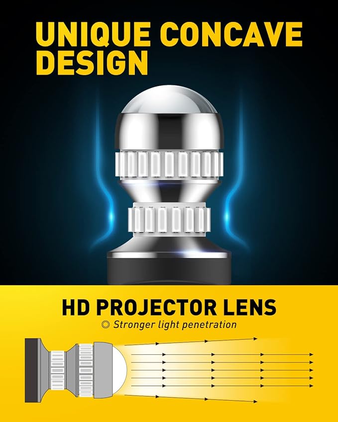 - Unique imitated halogen shape design. Resembling halogen bulb shape design and sequencing 54 pieces 4014-SMD LED chips precisely around the light. Delivering 360° high luminous efficiency with full amber light, easier to be noticed and safer to drive