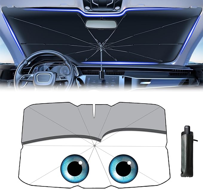 - Ideal Gift for car accessories- Coricha funny eyes windshield sun shade design makes your vehicle special under sunshine. Funny visor reflects personality and attitude. It's a good gift chocie for car owner.