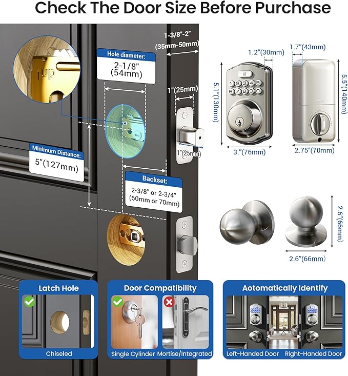 - Easy to Install: With just a screwdriver, you can easily finish installation and programming in minutes. It is compatible with all American standard left and right-handed doors