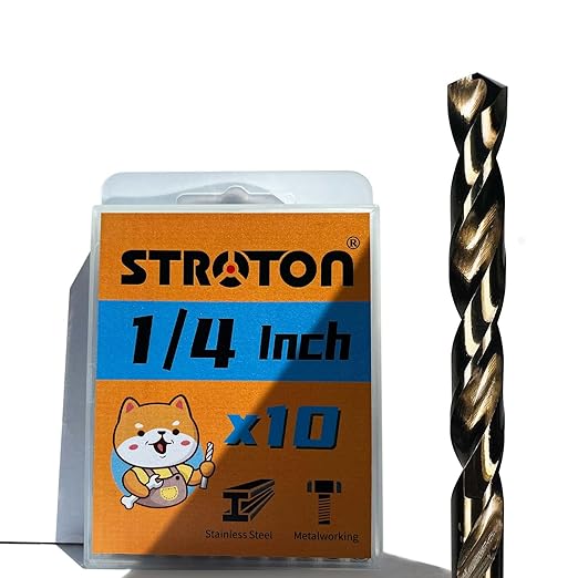 (1/4 Inch, Pack of 10) M35 5% Cobalt Twist Drill Bit Set for Hard Metal, Steel, and Stainless Steel