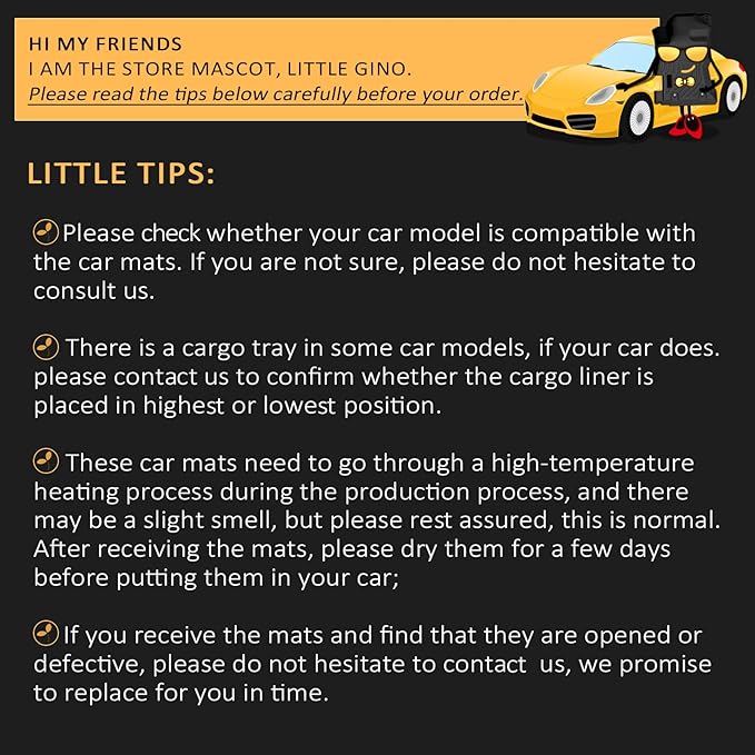 - About Smell and Wavy Curls Tips: After the cargo mat for Honda HRV 2025 cargo liner is received, it can be exposed to the sun for a period of time. After the smell and curl marks disappear slowly, it can be used in the car
