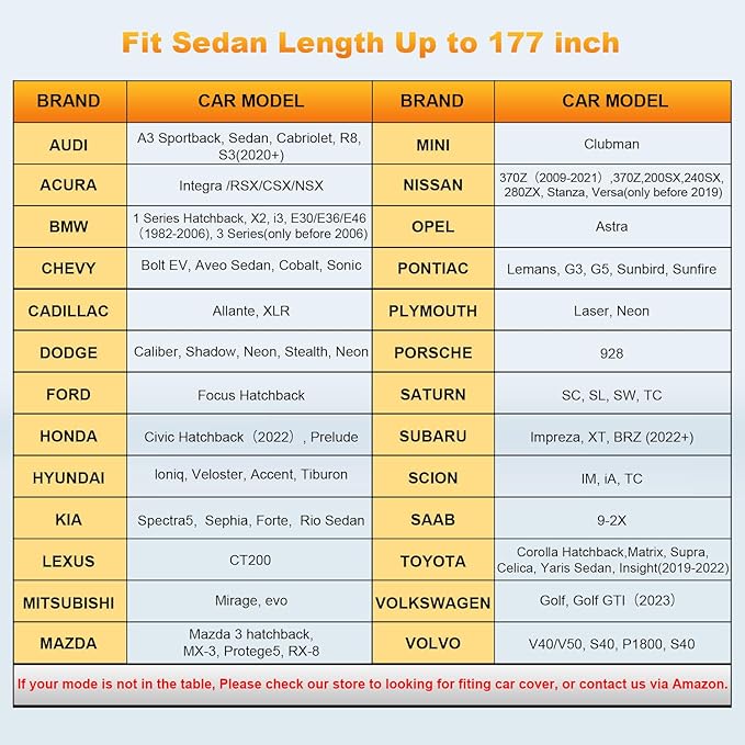 - Universal Fit for Sedan---Car cover SIZE: 450x175x150cm/177''X67''X59''inch, fit most sedan. Please Measure Your Car's Length First. Elastic pendulum and buckle can be adjusted freely. Come With A Large Enough Portable Storage Bag To Keep Your covertor para carro contra agua