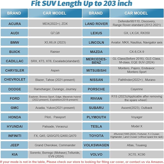 - Universal Dimension: GORDITA Car Cover SIZE: 203x78x75inches (518x200x189 cm), Fit for Most SUV cars, NOTE: Please Measure Your Car's Length before buying or contact us
