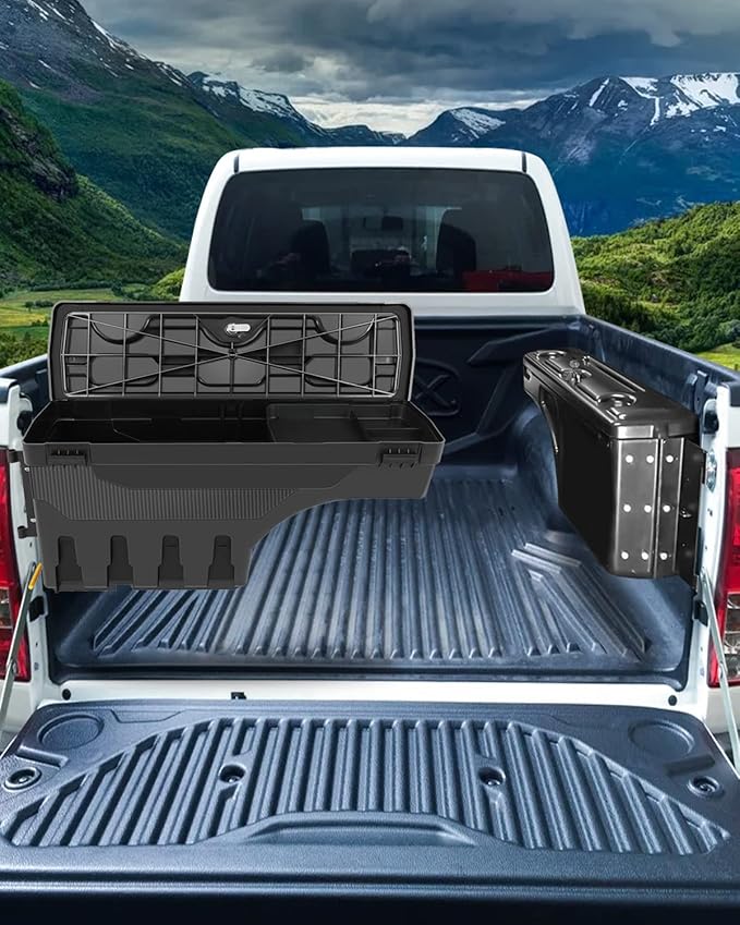 - 【LARGE CAPACITY TOOLBOX】: SCITOO toolbox fit for Ford for F-150 2015-2022.It provides plenty of room for buckets,repair tools,fire extinguisher canisters,warning signs and other items in your truck.It is versatile enough to be used in pickups,trucks,trailers,RVs and even at home.With this toolbox,you'll never have to worry about misplacing small items again