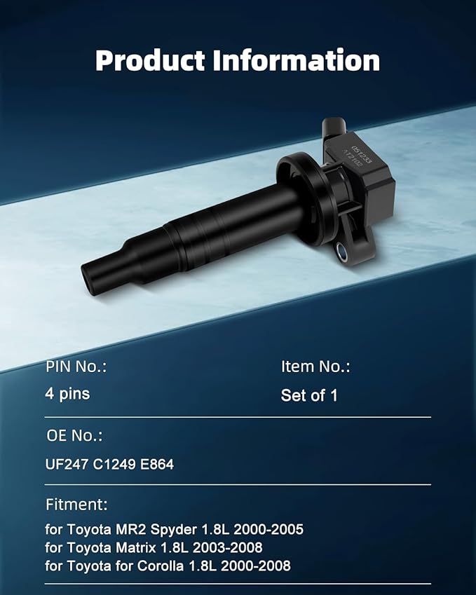 ECCPP ignition coil coils UF247 1 PCS,for Toyota MR2 Spyder 1.8L 2000-2005,for Toyota Matrix 1.8L 2003-2008,for Toyota for Corolla 1.8L 2000-2008 UF247 C1249 E864
