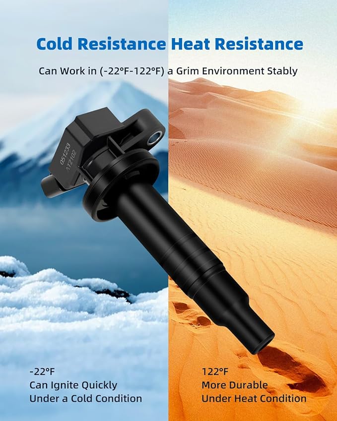 - Enhanced Coil and Spark Plug : Upgrade 15% more energy than OE coils and improve engine performance. TheIGNITION coils provide spark for your engine. Over time your factoryIGNITION coil and plugs will fail leading to poor gas mileage, misfire, hesitation, check engine light (CEL) and VSC warning lights, please replace your coils and plugs together to provide superior cold - start performance and a smoother running engine