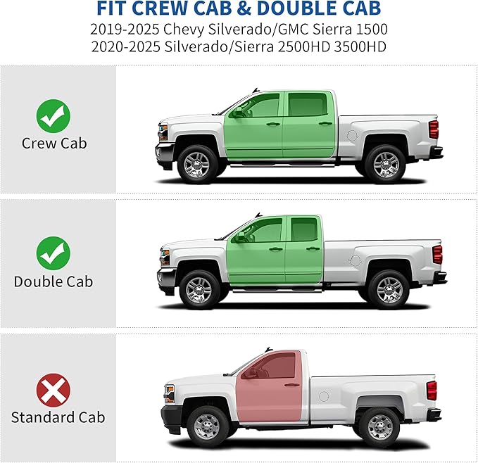 - FIT: The under seat storage box is compatible with 2019-2025 Chevy Silverado/GMC Sierra 1500, 2020-2025 Silverado/Sierra 2500HD 3500HD Double Cab & Crew Cab; Includes 2 underseat storage box (1 large & 1 extra free small )