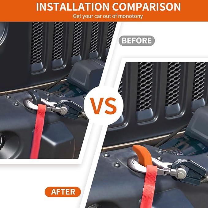 Bumper Tow Hook Covers 2Pcs Compatible with 2007-2018 Jeep Wrangler JK JKU/for 2018-2025 JL JLU & Jeep Gladiator JT Exterior Accessories(Orange)