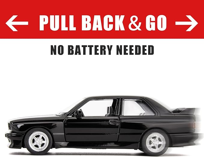 1:36 BMW M3 1987 Toy Car, Diecast Pull Back Model Car, Doors Open, Collection Kids Toy for Aged 3 and up, Gift Black