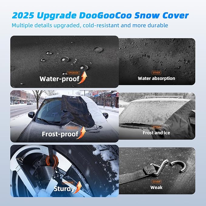 - [Secure Fit, Even in Wind] - Upgraded hooks and adjustable wheel straps lock the windshield snow cover firmly in place. It stays put through winter winds without scratching your paint. Secure in seconds, drive with confidence.