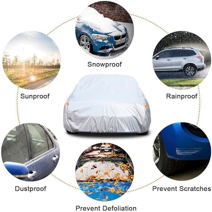 - 【Premium Material】-Kayme 6 layers car cover is made of heavy duty material. 1 PE&PEVA is 100% waterproof, It's great for rainproof snowproofing. 2 High reflective aluminum is good at sunproof and anti-uv, Keep the car cool in the summer. 3 Thicker and soft cotton will protect vehicle painting. Kayme multi-layer material is much thicker and more durable than other similar products.