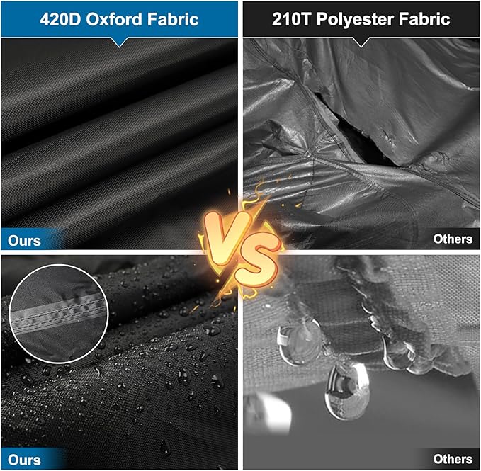 - 【Superior Material of Car Cover】This thick car cover is made of High reflective black spray coating, waterproof PU coated layer, 420D Oxford cloth, black waterproof coating, 100% waterproof! 420D Oxford cloth is more tear-resistant and waterproof than 210T polyester taffeta material! Will NOT cause damage to your car! Withstands summer sun and winter rain/snow!