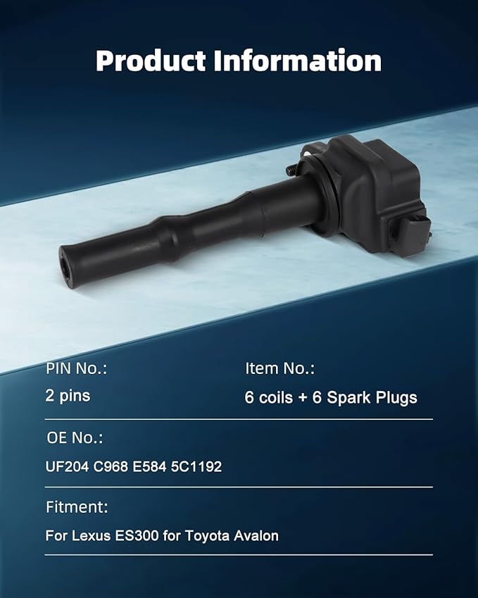 ECCPP 6 ignition coils with 6 iridium Spark Plugs UF204,coils packs,for Toyota Avalon 1995,Camry 1994-1995 & for Lexus ES300 1994 1995 V6 3.0L UF204