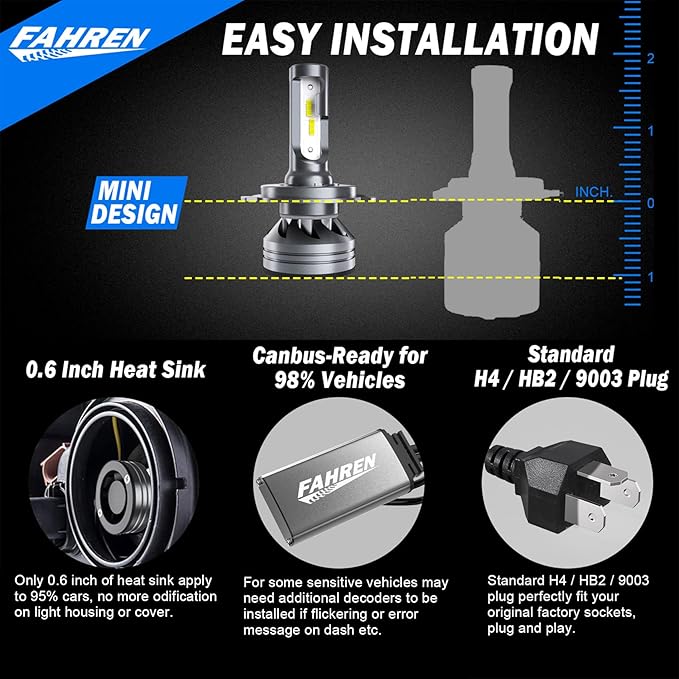 - 【CAN bus-Ready for 98% Vehicles】 - Our H4 fog bulbs and fog bulbs work with 98% of vehicle's computer system without error, while some sensitive models may require additional CAN bus decoder to be installed.