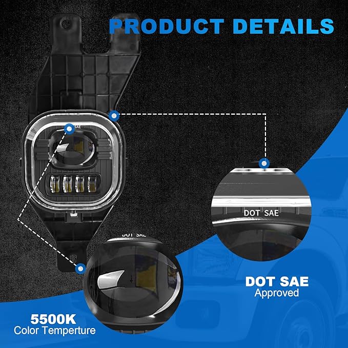 - DOT Certified & IP67 Waterproofing: Engineered for longevity, our fog lights boast an IP67 waterproof rating, a rugged aluminum casing, and a shatterproof PC lens. This design offers a substantial upgrade over OEM and most aftermarket options. With rigorous quality control and DOT & SAE certification, you can trust in the safety, durability, and performance of our fog lights