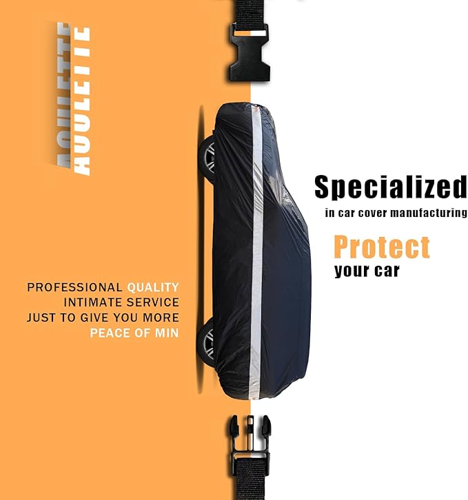 - 【All-Weather Protection】- Aoulette weatherproof car cover provide overall protection for your vehicle from sun, uv rays, rain, snow, frost, dust, fallen leaves and bird droppings. No matter hot sun or cold weather, this car cover can protect your car well. Suitable for outdoor and indoor use.