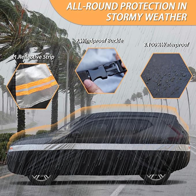 SUV Car Cover Waterproof All Weather,Outdoor Full Exterior Covers for SUV,Universal Fit Fit Chevy Tahoe, Traverse, Mercedes GLS, Infinite QX80, Patro etc.(Fit 202"-206")