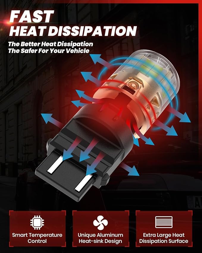 - ๐ก๏ธSmart Cooling = Stable Brightness: Say goodbye to dimming and flicker. Our intelligent thermal control chip and full aluminum heat-sink body keep your bulbs cool even in 120ยฐF heat. That means steady brightness, longer lifespan, and zero overheating worries โ drive with confidence in any weather