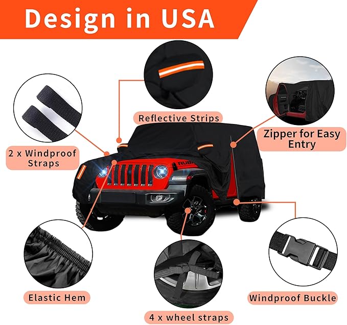 - 【Upgrade All-Weather Protection】FiveFox full exterior covers can provide full protection in all seasons. Like a mobile car garage, protects your Jeep from UV rays, sand, dust, hail, leaves, twigs, snow, rain, frost, bird droppings, and animals