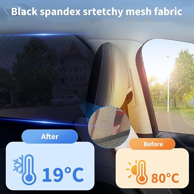 - [Double protection] Double nylon mesh car window shades,the double layer does not affect the window lifting.It is cooler and decelerates your car interior trim aging.Privacy Protect for Kids,Family,Pets.