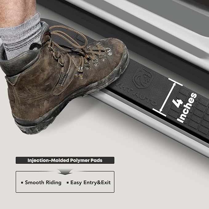 - Rocker Panel Mount: Running boards come with all necessary brackets, bolts, and nuts for installation, eliminating extra drilling if your vehicle has preexisting mounting holes. The packaging features five layers of reinforcement to prevent deformation