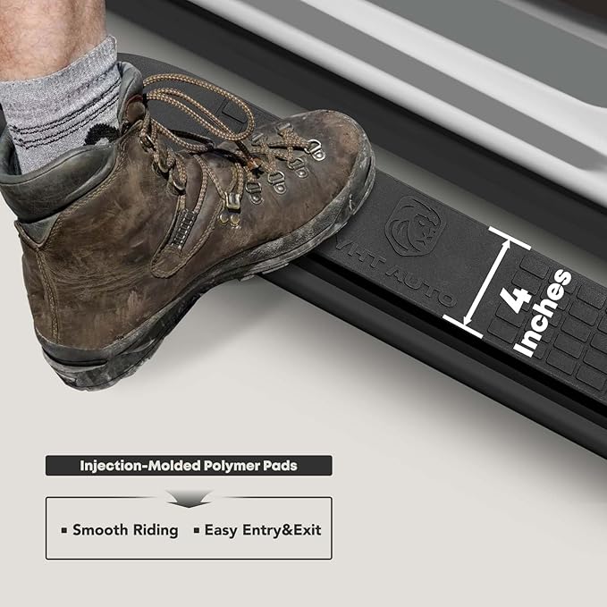 - Rocker Panel Mount: Running boards come with all necessary brackets, bolts, and nuts for installation, eliminating extra drilling if your vehicle has preexisting mounting holes. The packaging features five layers of reinforcement to prevent deformation