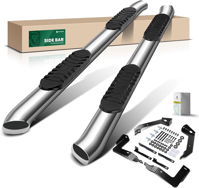 - Frame Mount: Running boards come with all necessary brackets, bolts, and nuts for installation, eliminating extra drilling if your vehicle has preexisting mounting holes. The packaging features five layers of reinforcement to prevent deformation