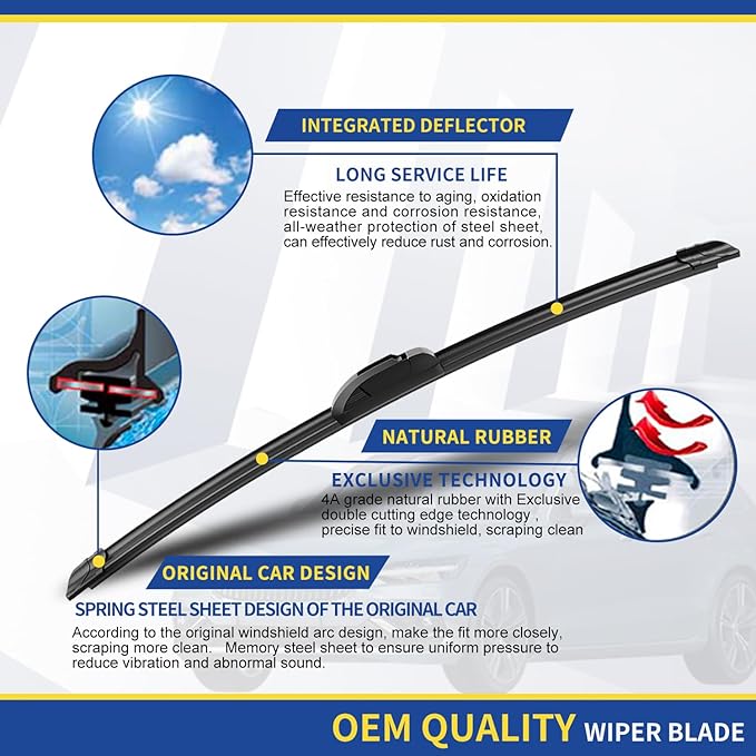 - Dual precision-tensioned steel springs, coupled with an asymmetrical wind spoiler, deliver uniform pressure distribution and better windshield contact, eliminating wet spots that can impede your vision. Blended dual rubber compound with graphite coating ensures smooth, quiet operation and a clean, consistent wiper.