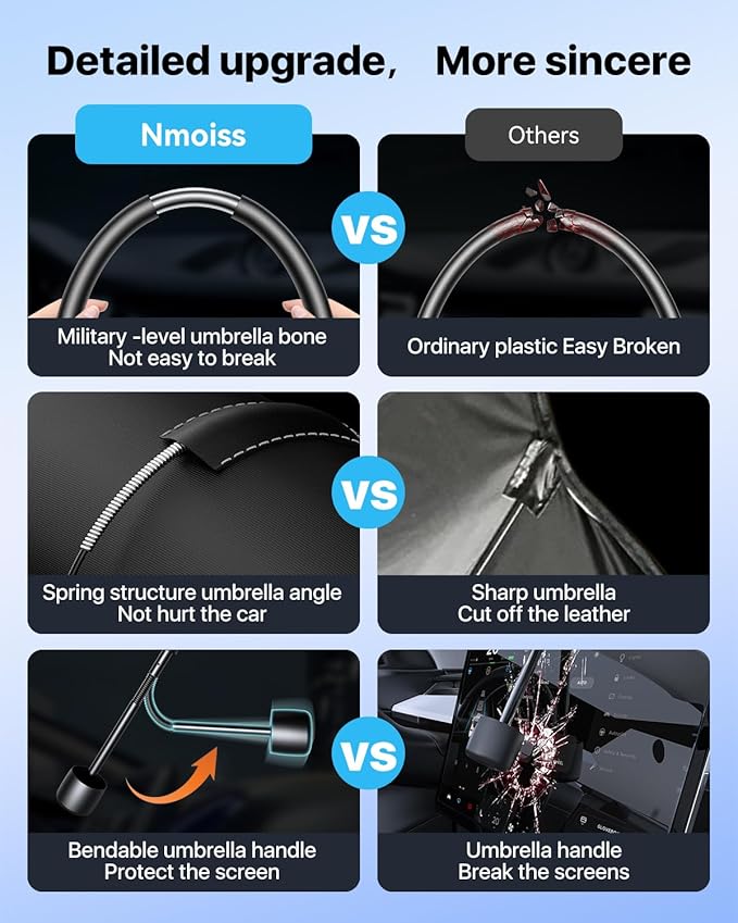 - [Precision Fit for BMW ] Exclusively designed for BMW 3 Series, this Nmoiss Sunshade Umbrella provides a perfect 1:1 fit for BMW windshields — ensuring edge-to-edge coverage and seamless protection. Tailored for BMW 3 Series