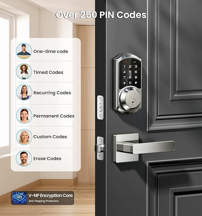 Veise VE06-L Smart Locks with 2 Lever Handle Set, App Control, Keyless Entry Deadbolt for Front Door, Electronic Digital Touchscreen Keypad, Auto Lock, Waterproof, Easy Installation, Satin Nickel