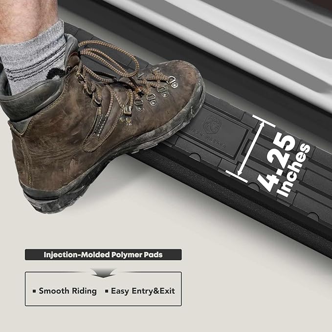 - Enhanced Convenience: 4.25 inch wide steps provide a solid support point for passengers to get on and off the vehicle, making it easier for them to enter and exit. They also allow convenient access to items on the roof. The textured surface is anti-slip, ensuring safety on rainy, snowy days, or in the outdoors