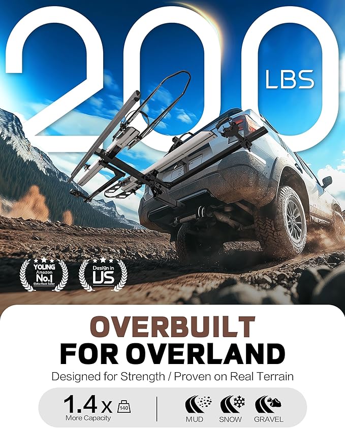 - 200 LB TOTAL CAPACITY: Built for durability and strength, this bike rack boasts an impressive 200lbs capacity, securely accommodating heavier electric bikes or multiple conventional bicycles with ease. Trust in its robust construction for reliable, strain-free transportation.